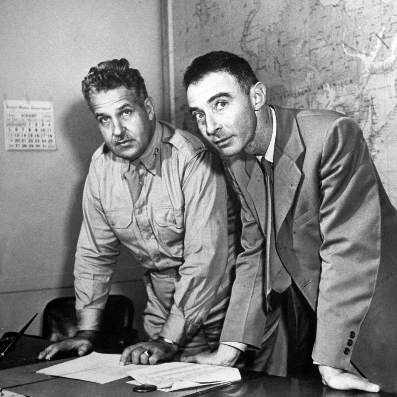 *links: General Leslie Groves, Leiter der Entwicklung des “Manhatten Projects”, rechts: Robert Oppenheimer, Wissenschaftlicher Leiter des Manhatten Projects.